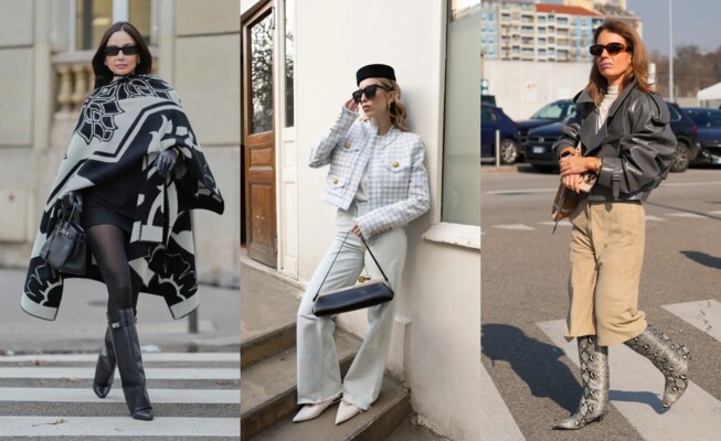 البوت بنقشات لافتة: اختاري نقوشًا مثل جلد الثعبان أو طبعات الحيوانات لتسليط الضوء على أسلوبك، ويمكن ارتداؤها مع شورت برمودا أو تيشيرت وجاكيت جلد.