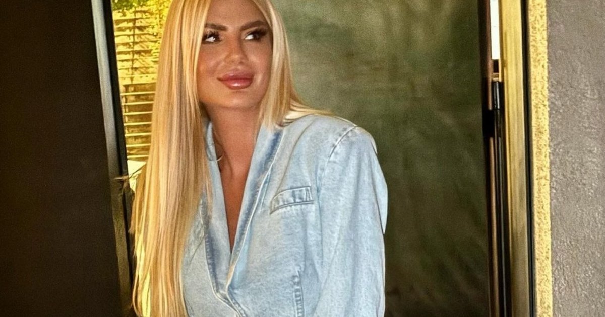 وتركت ساندرا شعرها منسدلاً، وطبقت ماكياجاً قوياً يليق بملامح وجهها.
