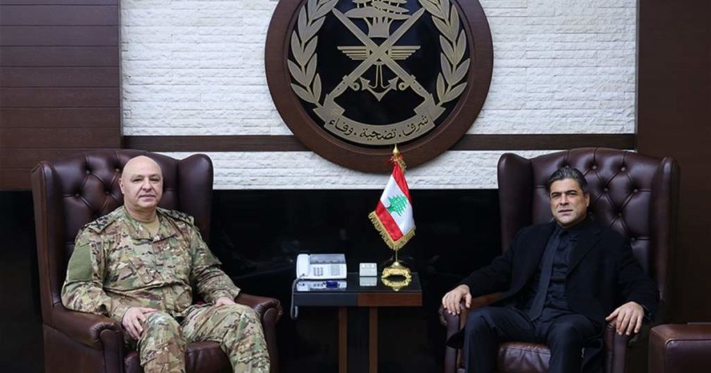 إستقبل قائد الجيش اللبناني العماد جوزيف عون الفنان اللبناني وائل كفوري في مكتبه في اليرزة.