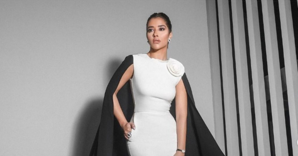 تألقت الفنانة اليمنية بلقيس بلوك رائع، إذ إرتدت فستاناً طويلاً لامعاً باللون الذهبي مغطى بالترتر وبكمين طويلين، وتركت شعرها القصير منسدلاً، وطبقت مكياجاً ناعماً أظهر جمال ملامح وجهها.