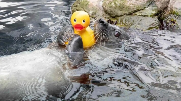 أصبحت فقمة الميناء “ريغي”، البالغة من العمر 33 عامًا في حوض أسماك نيو إنجلاند ببوسطن، محور اهتمام رواد وسائل التواصل الاجتماعي بعد انتشار مقطع فيديو لها وهي تلعب ببطتها المطاطية.
