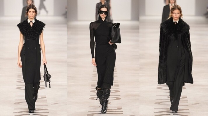 أعاد العرض الفرو، الذي يمثل جزءاً أصيلاً من هوية “فندي” وكان قد تراجع في السنوات الأخيرة، إلى الواجهة، من خلال ياقات وتفاصيل وزخارف بارزة ومعاطف جلدية مزينة بقطع فرو مشغولة يدوياً كالدانتيل. حملت الأزياء الرجالية أكبر قدر من الفخامة، في حين مزجت إحدى القطع النسائية الفرو بنقوش تمويهية، مؤكدة الدمج بين الحرفة والطرح المفاهيمي.