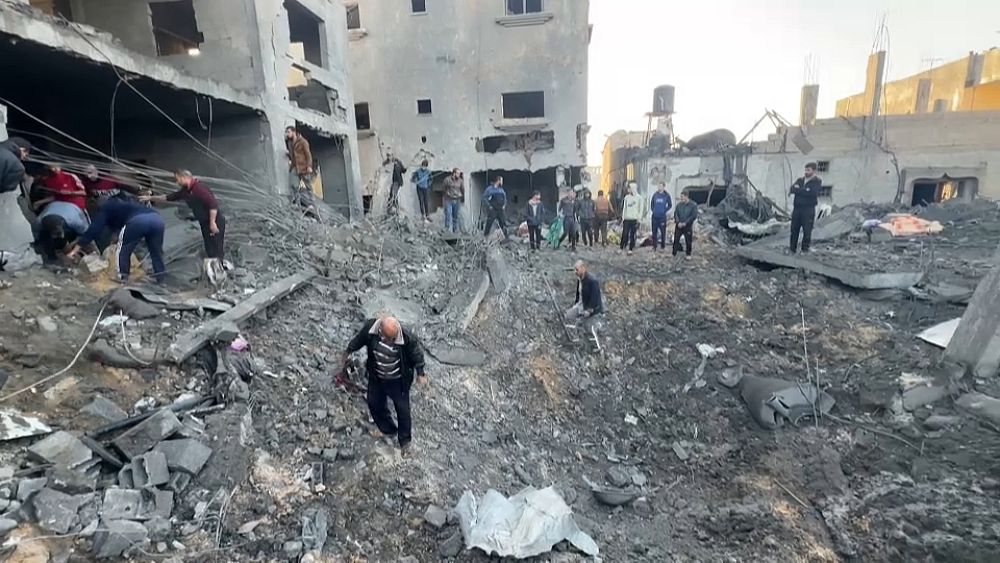 بدأ فلسطينيون بالبحث عن ضحايا القصف الإسرائيلي من تحت الأنقاض، بالبحث عن جثامين الضحايا، وإنقاذ الجرحى والمحاصرين تحت الركام المباني المدمرة في حي بني سهيلة شرق خان يونس في قطاع غزة. وقال حسين النجار، وهو أحد الفلسطينيين المتطوعين للبحث في الموقع: “أعتقد أنه ما زال هناك 20 شخصا تحت الركام”، مبينا أنه توجد عائلات ومدنيون وأطفال، وأنه تم انتشال جثامين نساء ورجال من تحت الأنقاض. وكان الناس نياما عند الثانية والربع، أي في الساعات أولى من يوم الخميس.