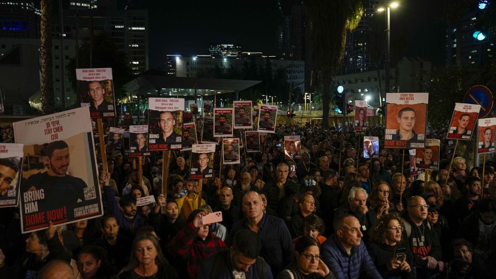 ومنذ الهجوم المباغت الذي شنه مقاتلو حركة حماس على إسرائيل في السابع من أكتوبر/ تشرين الأول، ينفذ عشرات الإسرائيليين اعتصاماً متواصلاً أمام مقر وزارة الدفاع في تل أبيب، متعهدين بمواصلة تحركهم إلى حين إطلاق المختطفين في غزة واستقالة رئيس الوزراء بنيامين نتنياهو.