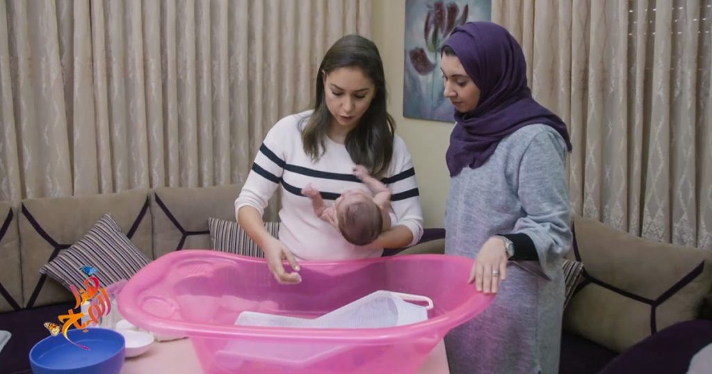- يجب الحفاظ على دفء الطفل؛ فبمجرد خلع ملابسه يجب وضعه في الماء على الفور حتى لا يبرد.