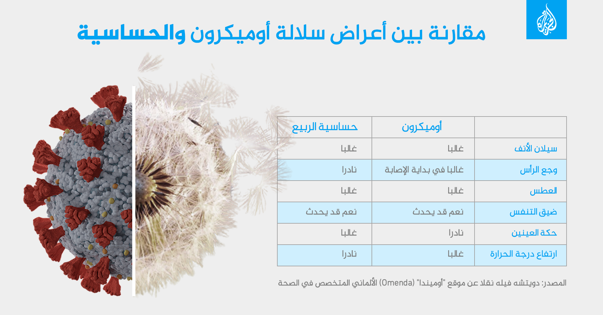 ما أعراض الحساسية مقارنة بالفيروسات، مثل نزلات البرد أو الإنفلونزا أو كوفيد-19؟