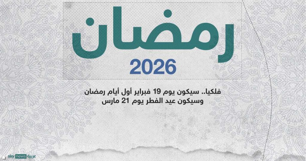 وأضاف أن الهلال سيشاهد بعد غروب شمس يوم الأربعاء 18 فبراير، وعليه يكون الخميس 19 فبراير 2026 غرة شهر رمضان، والذي سينتهي يوم الخميس 19 مارس وسيوافق يوم الجمعة 20 مارس 2026 غرة شوال وعيد الفطر المبارك.