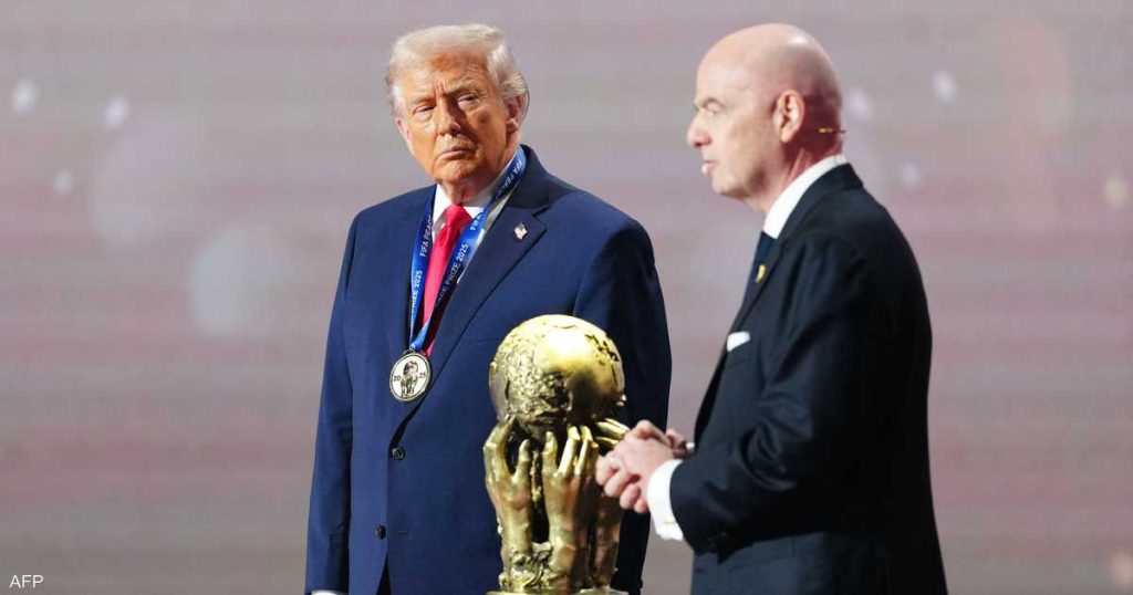 وعلى خشبة المسرح، ارتدى ترامب ميدالية ذهبية التي سلمها له رئيس “الفيفا” جاني إنفانتينو.
