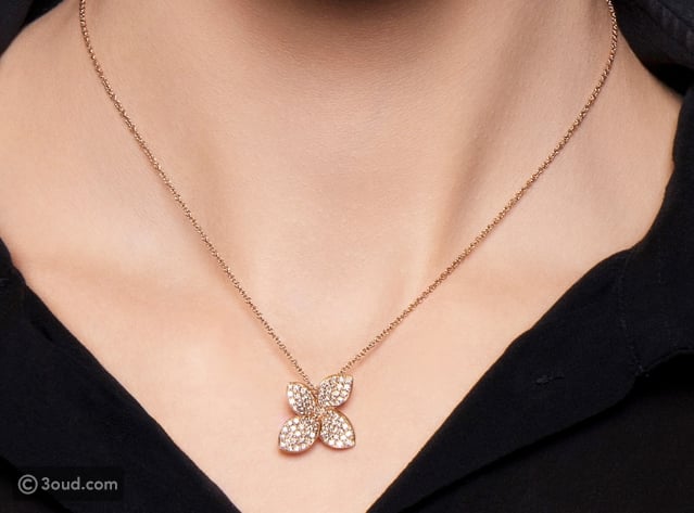 تتألّق مجموعة “جيارديني سيغريتي سوتوار” Giardini Segreti Sautoir كأشعة الشمس التي تنير الفترة الصباحيّة في الصيف، وقد ُصممت لإثارة تفاعل أثيري للضوء على البشرة. وتزخر قطعها المصنوعة بدقة من الذهب عيار 18 قيراطًا، بأوراق رقيقة تتراقص كالفراشات تحت أشعة الشمس الدافئة، فتُنير جسمك بشلالات من الماس الذي يبتكر عليها تأثيراً ضوئياً لا ُيضاهى.