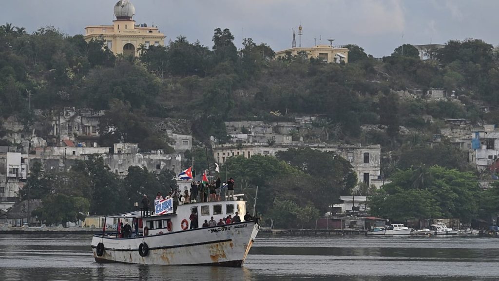 ورست سفينة الصيد “ماغورو” في ميناء هافانا بعد تأخر دام ثلاثة أيام عن الموعد المحدد، بسبب رياح قوية وتيارات بحرية عنيفة، إضافة إلى مشاكل تقنية، على أن تصل لاحقًا سفينتان أخريان لتعزيز الدعم.