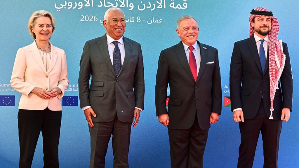 عقد الأردن والاتحاد الأوروبي، الخميس، قمة في العاصمة عمّان، بمشاركة الملك عبدالله الثاني، ورئيس المجلس الأوروبي أنتونيو كوستا، ورئيسة المفوضية الأوروبية أورسولا فون دير لاين، في خطوة وُصفت بأنها محطة مفصلية في مسار العلاقات الأردنية-الأوروبية.