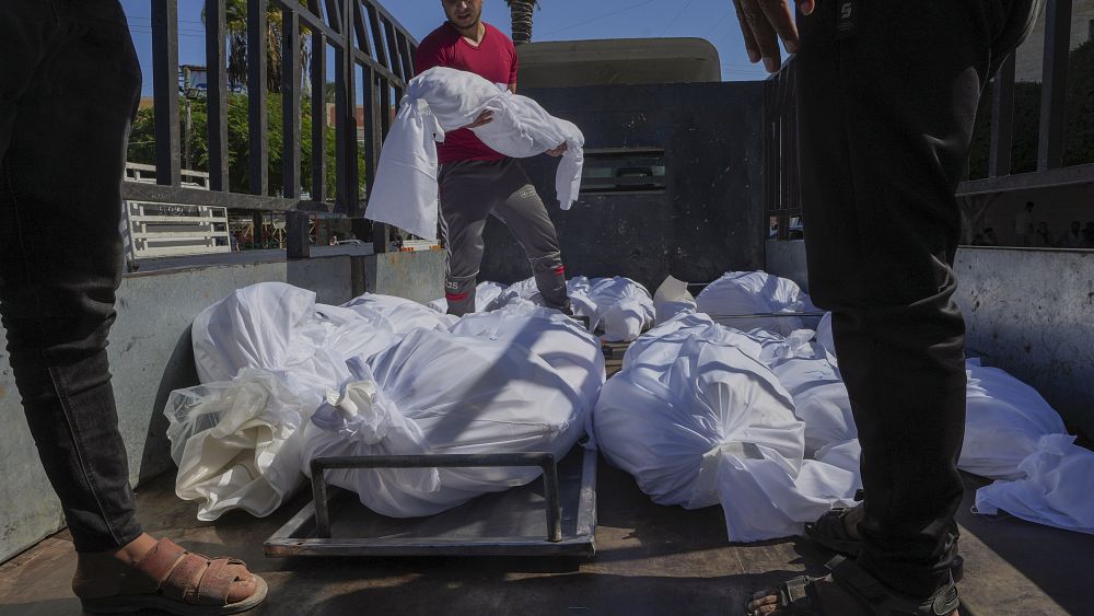 وأظهر مقطع فيديو شاركه موظفو وكالة اللاجئين الفلسطينيين التابعة للأمم المتحدة، شاحنة للمثلجات تستخدم كمشرحة في مدينة دير البلح.