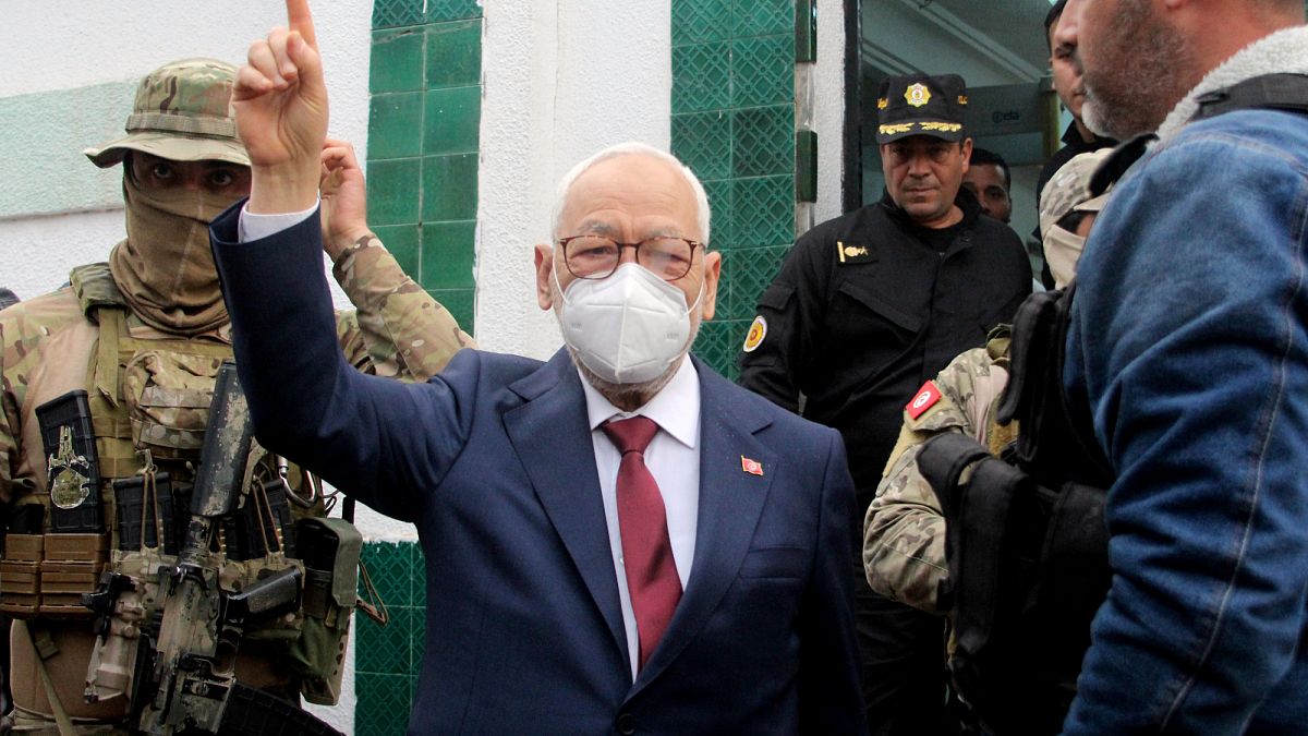 وفي أبريل/نيسان 2023، نفّذت قوات الأمن عملية مداهمة لمنزل راشد الغنوشي، قبل أن يتم إيقافه لاحقًا، ثم صدر قرار قضائي بإيداعه السجن بتهمة الإدلاء بتصريحات وُصفت بأنها “تحرّض على الفوضى والعصيان”.