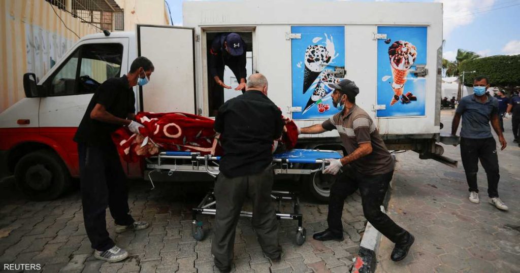ونقلت وكالة “رويترز” عن الطبيب ياسر علي الذي يعمل بمستشفى الأقصى في دير البلح، قوله إن “المشرحة تستوعب 10 جثث فقط، لذلك قمنا بإحضار سيارة مجمدات الآيس كريم من أجل حفظ الأعداد الكبيرة من الشهداء”.