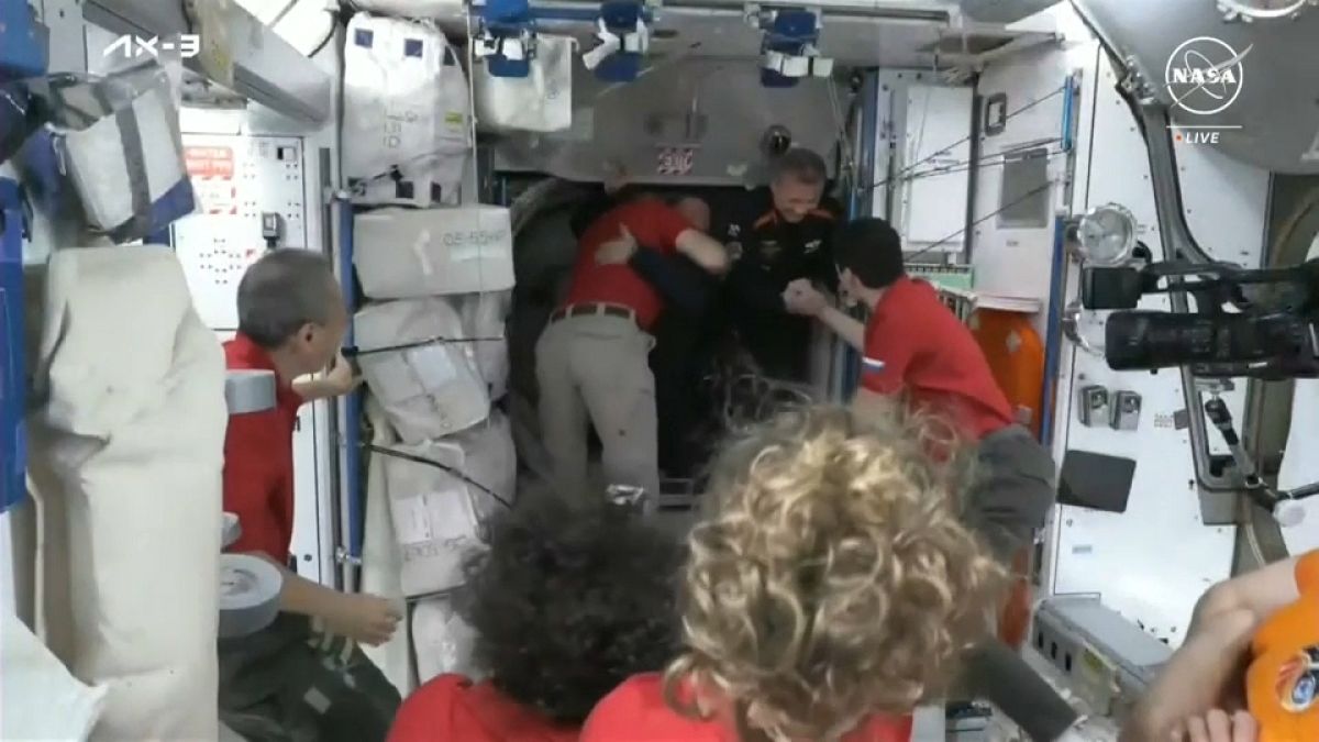 رحب رواد الفضاء في محطة الفضاء الدولية ترحيبًا حارًا بنظرائهم القادمين في مهمة خاصة، والذين وصلوا اليوم السبت.