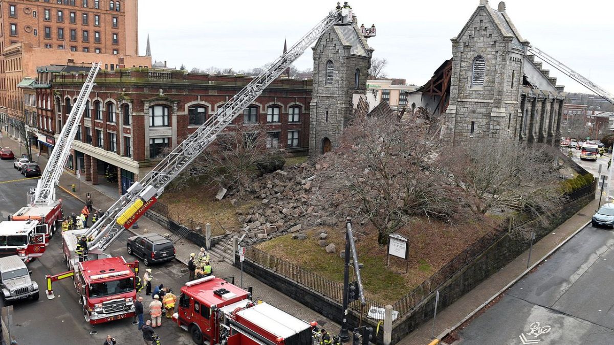 وقع انهيار كبير بمبنى الكنيسة التجمعية الأولى العتيق في مدينة نيو لندن بولاية كونيتيكت الأمريكية دون أن ينتج عن الحادث أي إصابات أو وفيات.