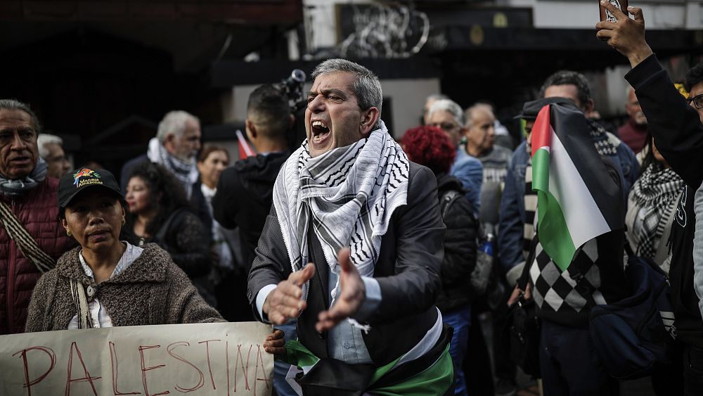 خرج المئات من المتظاهرين المؤيدين للفلسطينيين إلى شوارع العاصمة الكولومبية بوغوتا، للتعبير عن غضبهم إزاء مقتل آلاف المدنيين في الحرب في غزة.