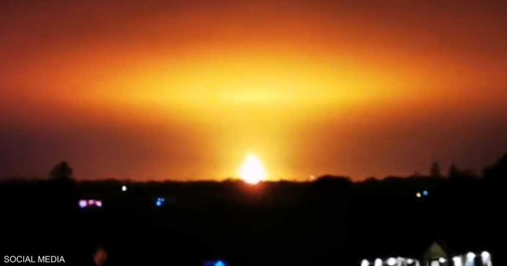وأظهرت مقاطع مصورة منشورة على وسائل التواصل الاجتماعي في وقت سابق كرة نارية ضخمة تضيء السماء في المنطقة.