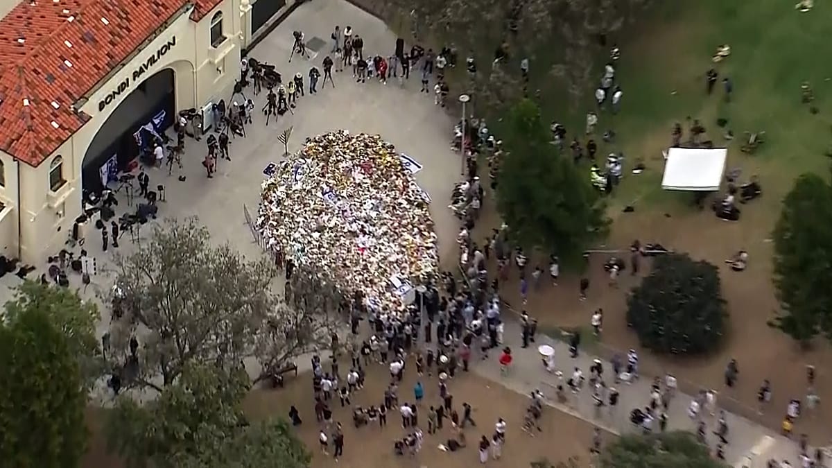 تجمعت الحشود قرب مبنى بوندي بافيليون، حيث وُضعت الزهور وأُشعلت الشموع عند موقع الهجوم. وأظهرت لقطات جوية حجم التكريم بينما واصلت الشرطة عملها على مقربة.