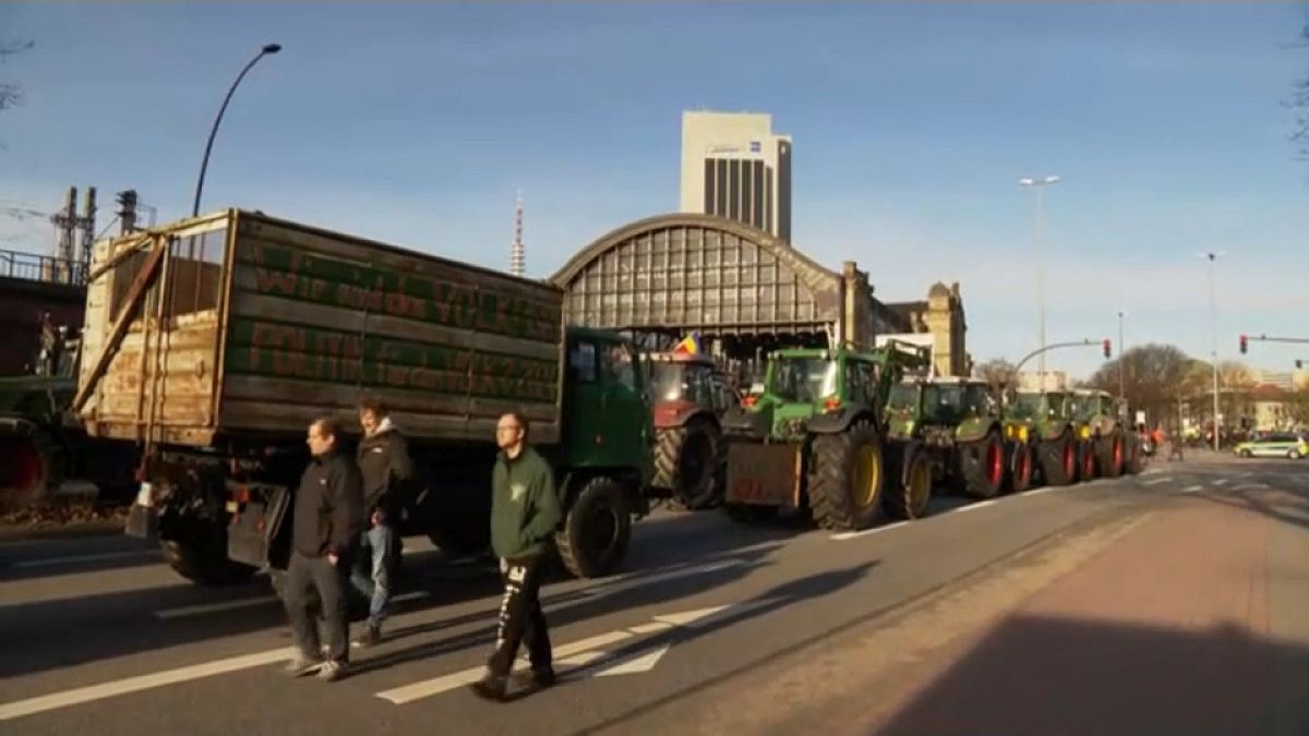 هذا وتسببت طوابير طويلة تضم المئات من الجرارات في تعطيل حركة المرور في وسط مدينة هامبورغ.
