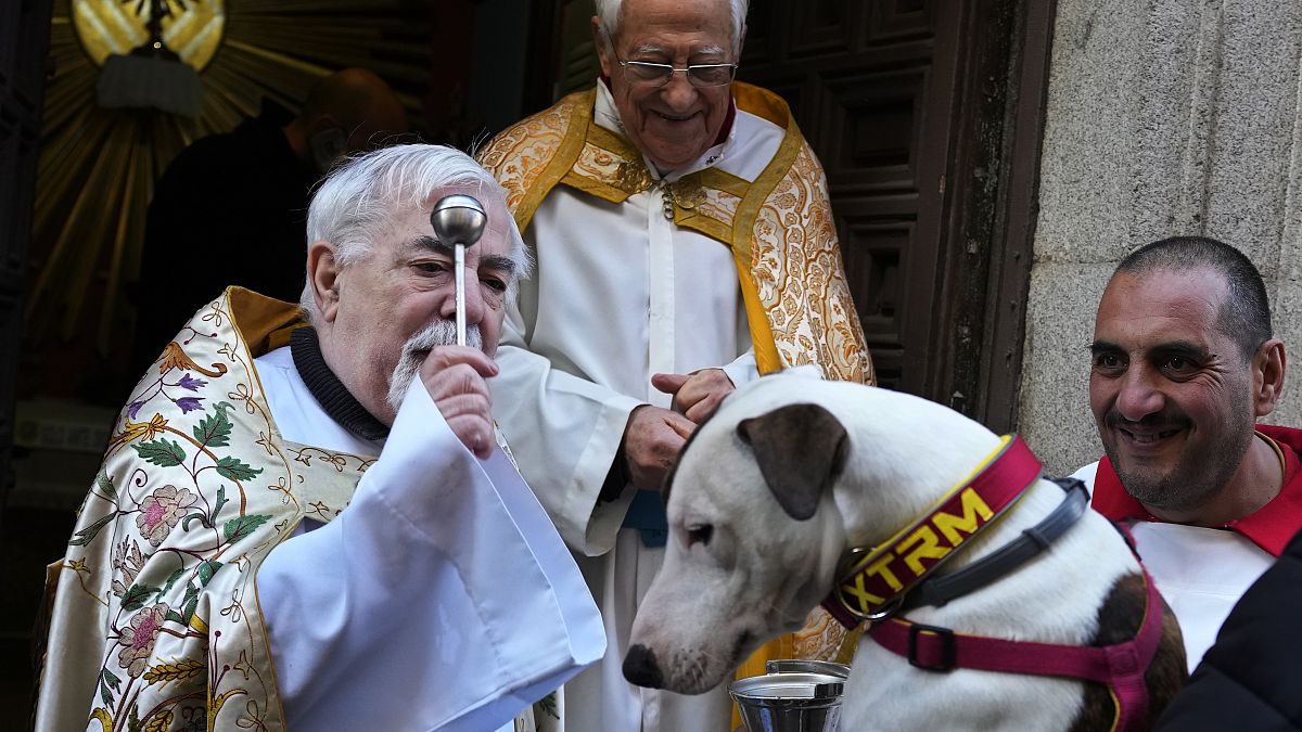 واصطحب سكان مدريد حيواناتهم الأليفة إلى كنيسة القديس أنتوني في وسط مدريد ليتباركوا بالمياه المقدسة من قبل الكهنة، في تقليد كاثوليكي يهدف إلى حماية ومباركة الحيوانات كي تبقى بصحة جيدة طوال العام.