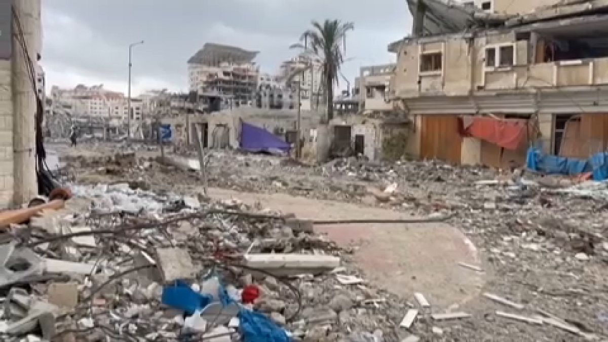 غطى ركام المباني المدمرة بفعل القصف الإسرائيلي المتكرر شوارع الرمال الضاحية الغربية لمدينة غزة، حيث جل المباني مهدم أو مدمر بالكامل، بما في ذلك مبنى يوجد فيه مكتب للجنة الدولية للصليب الأحمر. وتقول أم داوود، إن القصف طال المنطقة بالصواريخ والقذائف المدفعية والغارات الجوية، وتضيف قولها: “ليس هناك غذاء ولا ماء”. أما محمد مطر فيقول إن القوات الإسرائيلية ظلت في المنطقة مدة أسبوع، دمرت خلاله كل شيء.