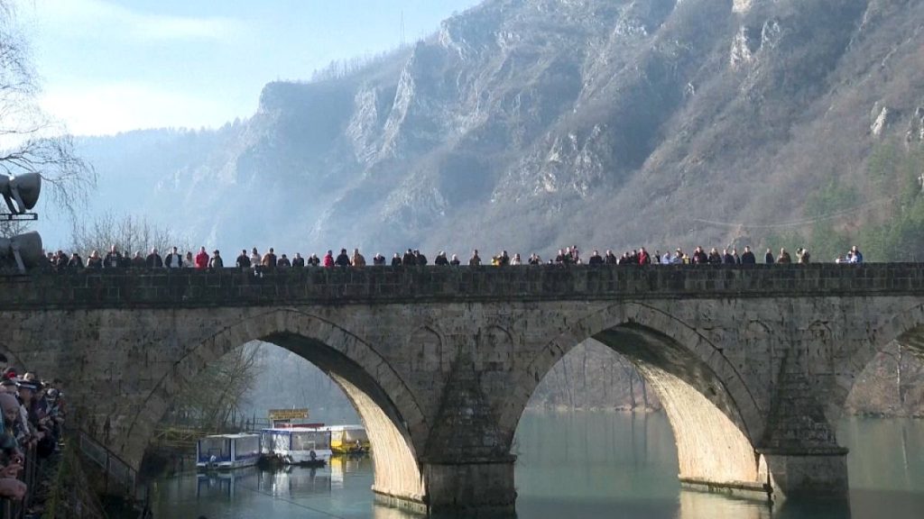 احتفل عشرات الأشخاص بعيد الغطاس، الجمعة، في مدينة فيسيغراد البوسنية. وأقيم الاحتفال بجانب جسر محمد باشا سوكولوفيتش، حيث يقفز المشاركون في نهر درينا البارد، للسباق من أجل الحصول على صليب ملفوف بالزهور يطفوعلى الماء. ويعد عيد الغطاس، أحد أهم الأعياد في التقويم الأرثوذكسي، إنه احتفال بمعمودية يسوع المسيح في نهر الأردن. وكجزء من الاحتفالات في البلقان، يُلقى الصليب في نهر أو بحيرة ويسبح المؤمنون لاستعادته.