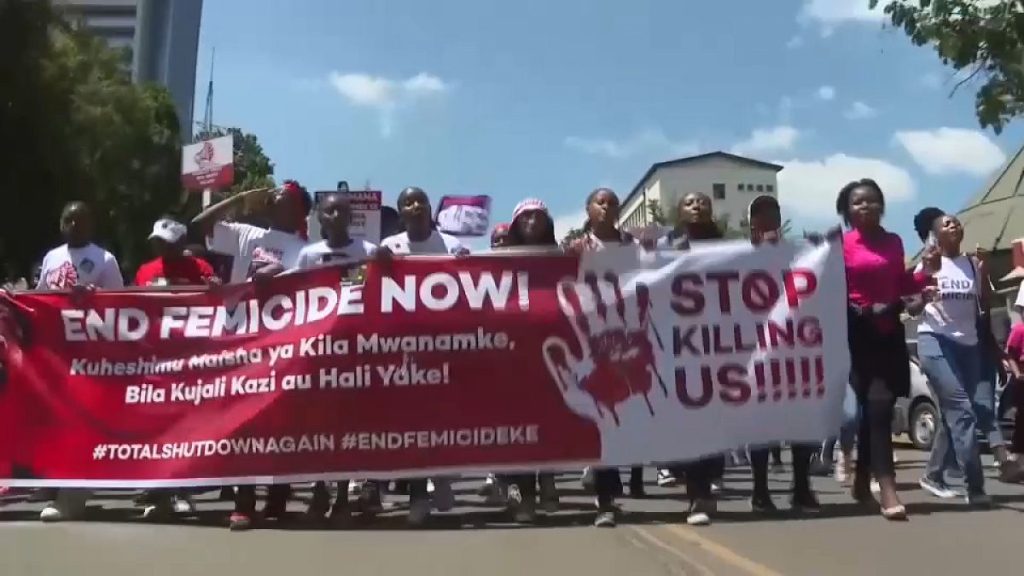 خرج آلاف الكينيين في مسيرة في العاصمة نيروبي، للتعبير عن رفضهم للعنف الجنسي والعنف الناجم عن ارتفاع نسبة قتل النساء، إذ قتلت أكثر من 12 امرأة في الآونة الأخيرة. وارتدى المتظاهرون قمصانا طبعت عليها أسماء النساء اللاتي وقعن ضحية جرائم القتل هذا الشهر. ورفع المشاركون في المسيرة لافتات حملت عبارات مثل: “توقفوا عن قتلنا”، و”لا يوجد مبرر لقتل النساء”.