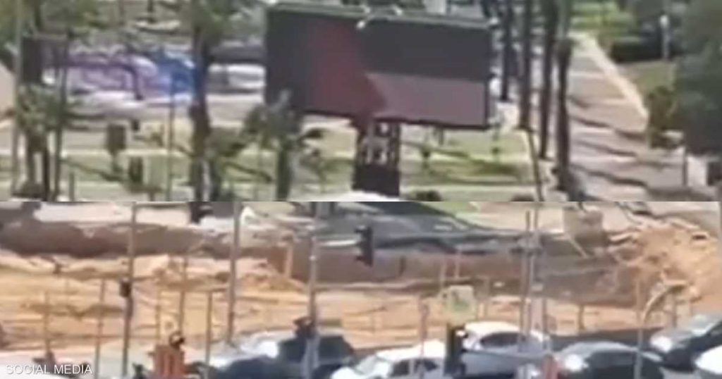 وتظهر في الفيديو لوحة إعلانات إسرائيلية تعرض لقطات للعملية العسكرية التي يخوضها الجيش ضد حركة “حماس”.