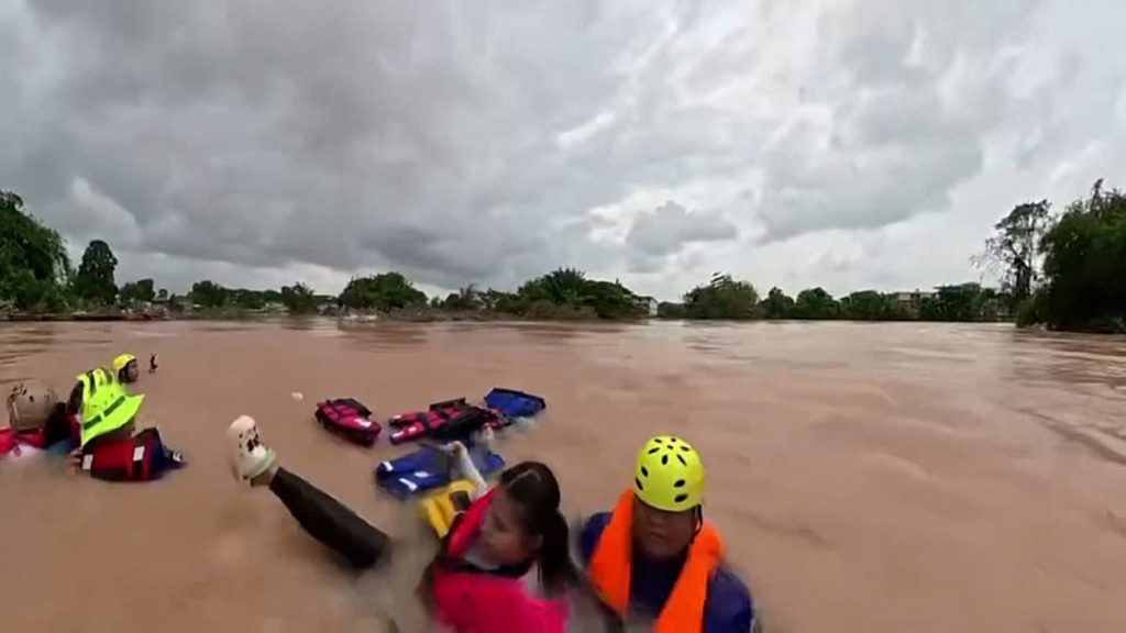 تواجه تايلاند فيضانات غزيرة في الجنوب، حيث غرق زورق إنقاذ يوم الجمعة في قناة متضخمة بالمياه في سونغكلا. كان الطاقم يساند جهود الإغاثة عندما أدى أثر الموج خلف سفينة عابرة إلى قلب زورقهم، فأغرقه خلال ثوان. نجا جميع من كانوا على متنه ووصلوا إلى برّ الأمان.