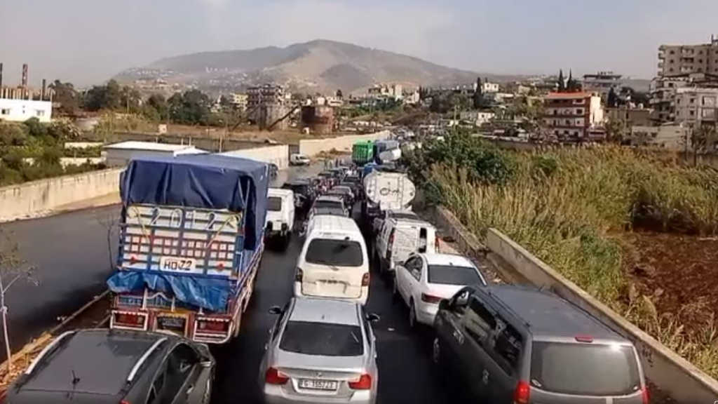 وأظهرت مقاطع فيديو نشرتها صفحات محلية على مواقع التواصل الاجتماعي توقف حركة السير على أوتوستراد البداوي بشكل كامل.
