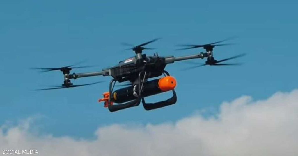وأظهر مقطع فيديو الطوربيد “Sting Ray” مثبتة أسفل طائرة مسيّرة من طراز “كوادكوبتر” البريطانية الصنع.