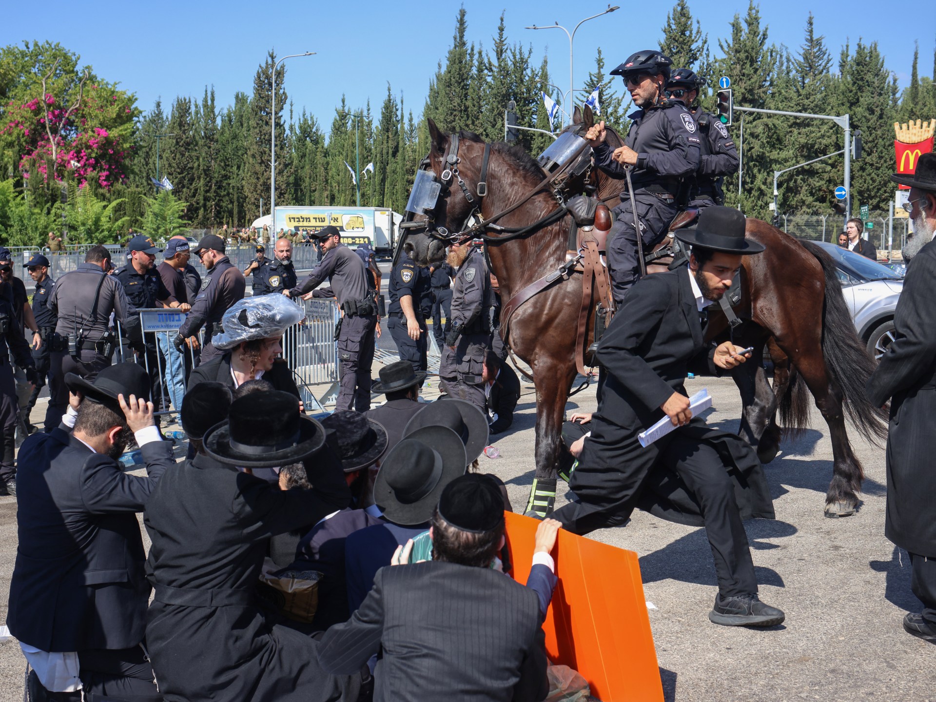 في المقابل، تجمّع العشرات من أنصار الفصيل الأورشليمي المتشدد في محاولة لمنعهم من الدخول، رافعين لافتات حملت عبارات رافضة للتجنيد، في مقدمتها الشعار الذي بات مرادفا لهذا الصراع “نموت ولا نتجنّد”، واصطدموا مع الشرطة التي تدخلت لتفريقهم بالقوة.