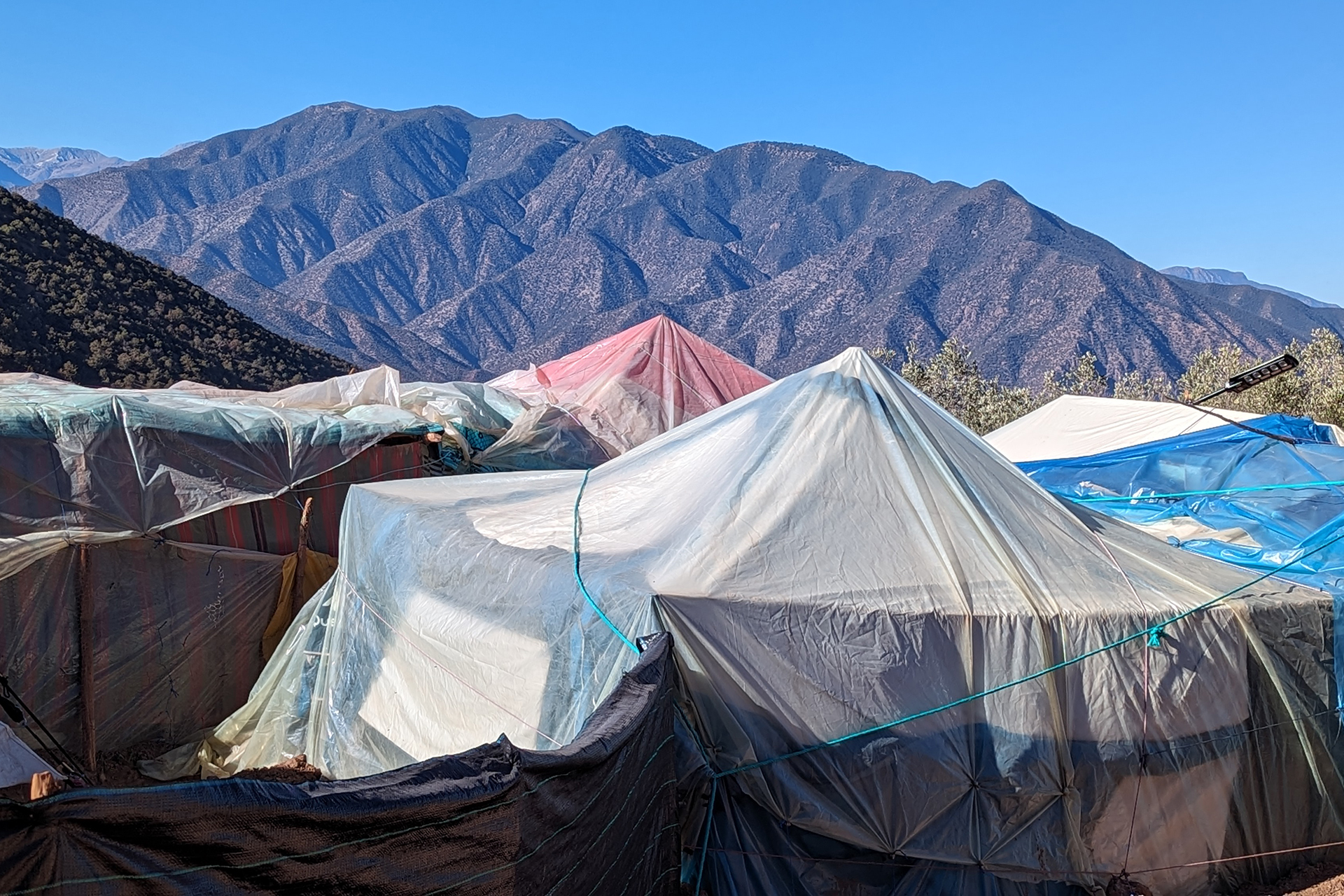 بمجرد النظر على الخيام المنصوبة والمتراصة في سفح الجبل، يمكن فهم أحاسيس الألم الممزوج بالأمل التي يعبر عنها سكان مدشر تنزرت بكل تلقائية، وهم ينتظرون الفرج والعودة إلى مساكنهم.