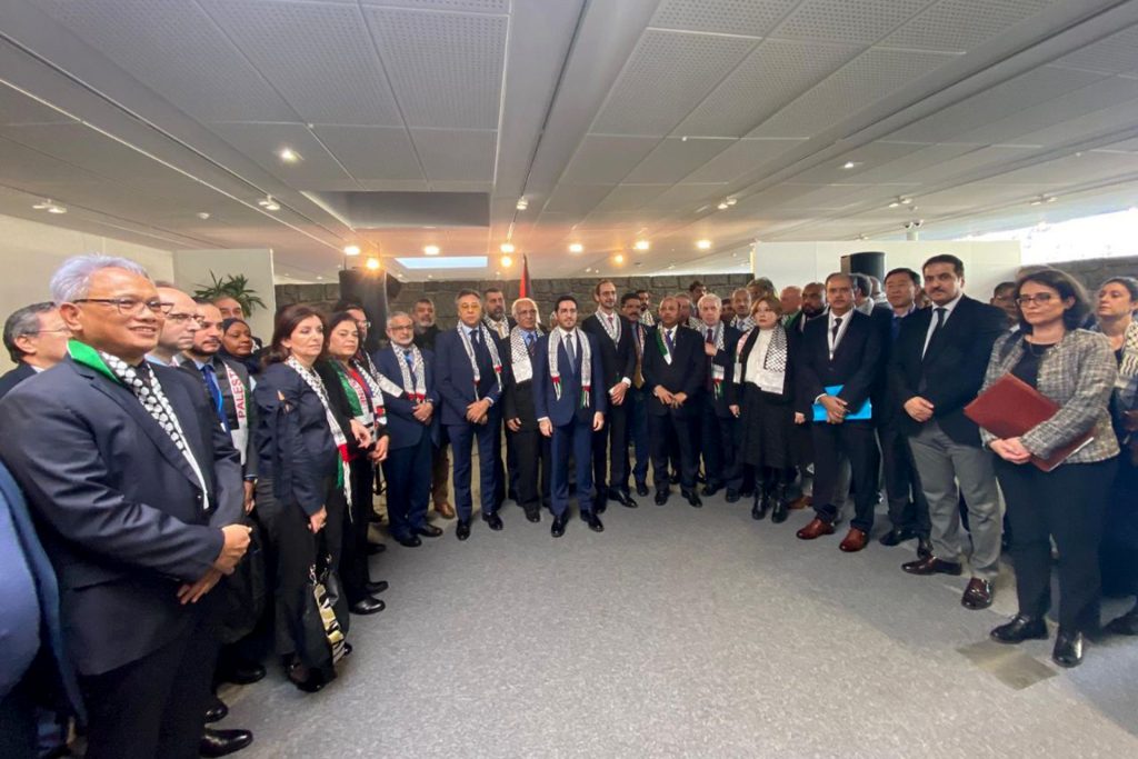 بدوره، أكد رئيس المجموعة العربية والمندوب الدائم لليمن لدى المنظمة محمد جميح، أن حضور السفراء يبعث “رسالة تضامن قوية إلى أبناء غزة الواقعين تحت قصف آلة الحرب الإسرائيلية، كما يرسل رسالة للمجتمع الدولي حول جرائم الاحتلال ضد أبناء الشعب الفلسطيني”.