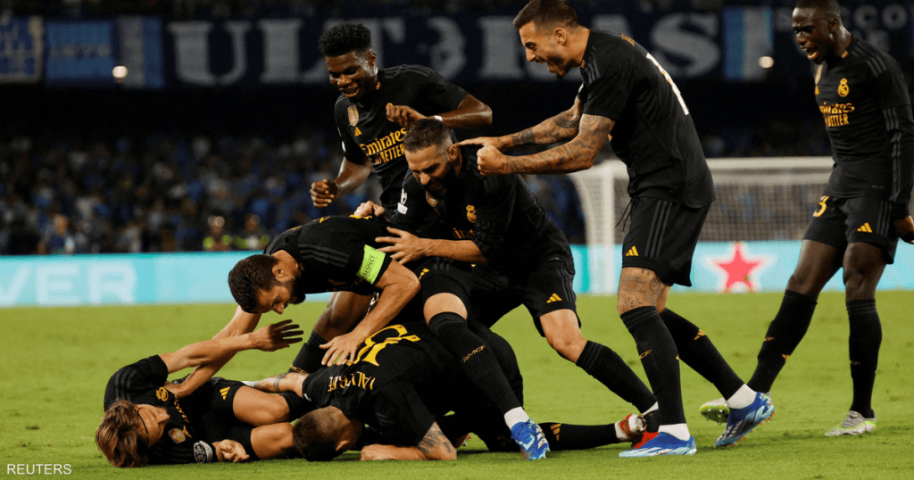 وسجل فينيسيوس جونيور وجود بلينجهام هدفي ريال مدريد في الشوط الأول بعدما تقدم نابولي بواسطة ليو أوستيجارد بضربة رأس.