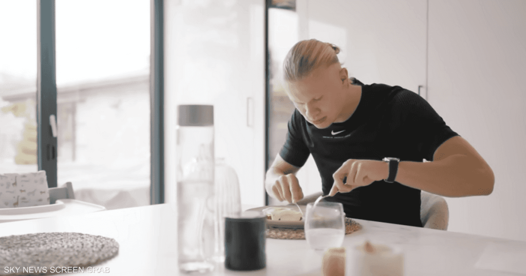 ويمزج هالاند في حياته اليومية بين الانضباط الرياضي وطقوس شخصية غريبة، وفقا للفيديو الذي عنونه بـ”يوم في حياة لاعب كرة قدم محترف”.