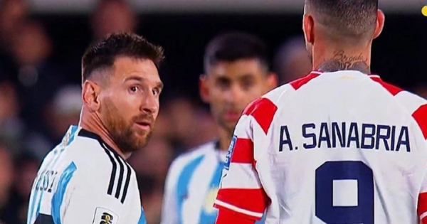 وفي الدقيقة 85 حدث تلاسن بين ميسي وسانابريا انتهى ببصق الباراغواياني على ظهر الأرجنتيني، والتي لم تُصِب ميسي، ولا حتّى إنتبه لها الحكم ولكنّ كاميرات الإعادة شاهدتها.