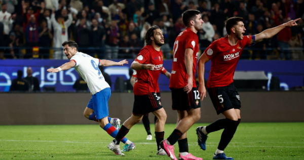 ضرب برشلونة موعداً منتظراً مع غريمه التقليدي ريال مدريد في نهائي كأس السوبر الاسباني بعد تخطيه أوساسونا بهدفيّن نظيفيّن في المباراة التي جمعتهما في الرياض.