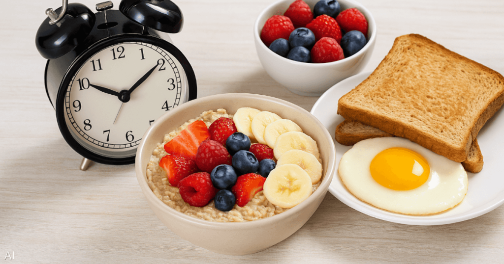 كما أظهرت أبحاث أن الفطور المبكر يحسّن مستويات الغلوكوز ويعزز إفراز هرمون GLP-1 الذي ينظم الشهية والهضم ومستويات السكر.