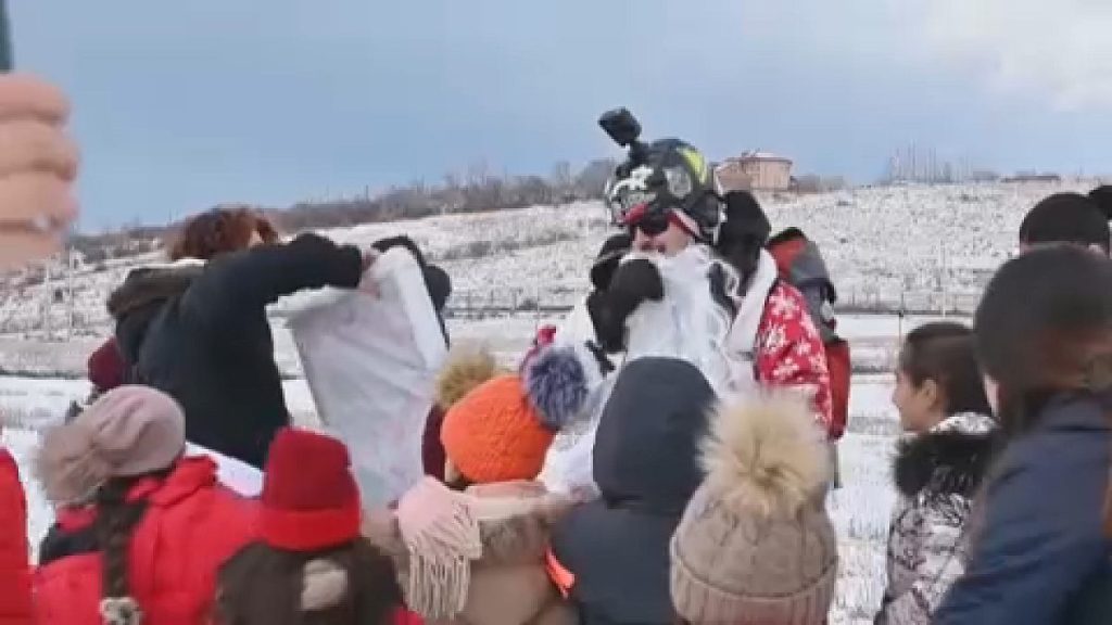قدّم طيارون شراعيون يرتدون زيّ سانتا كلوز هدايا للأطفال اللاجئين من منطقة ناغورني كاراباخ، بالقرب من قرية أكونك، خارج يريفان، كجزء من باراسانتا، وهو حدث نظمه نادي الطيران الشراعي الأرميني.