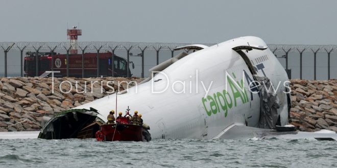 وفي أسوأ حادث طيران في هونج كونج منذ 25 عامًا، سقطت الطائرة وهي من طراز بوينج 747 في البحر قادمة من دبي وغمرت المياه جزءًا منها، لكن جميع أفراد الطاقم الأربعة الذين كانوا على متنها نجوا من الحادث.