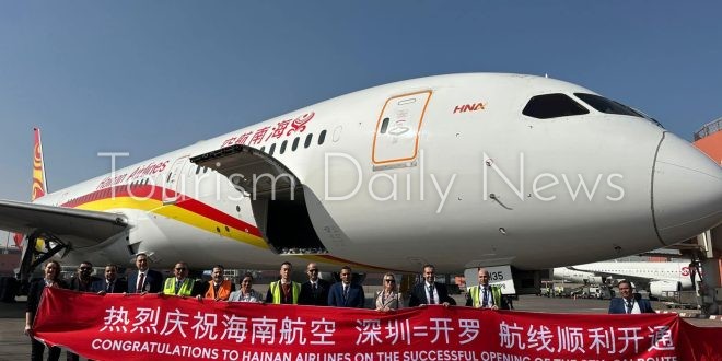 ومن المقرر أن تقوم شركة Hainan Airlines بتسيير 3 رحلات أسبوعيًا يومي الأحد والثلاثاء والخميس بين مطار القاهرة وشينزين في الصين.