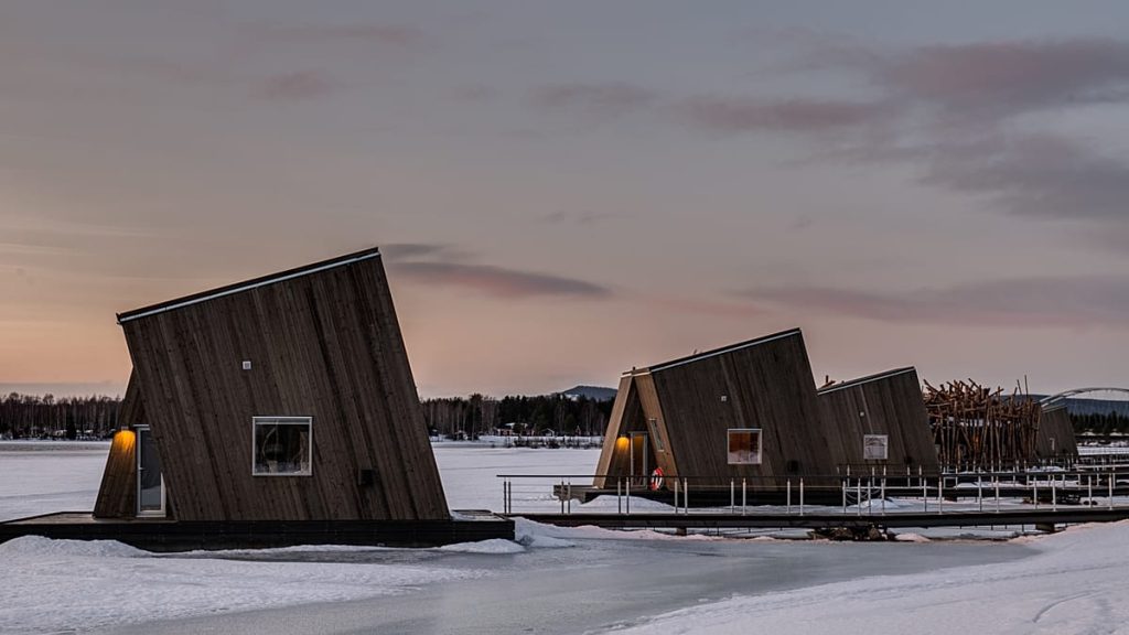 الفندق اللافت “Arctic Bath” عبارة عن ساونا ومنتجع دائري عائم راسٍ على نهر لولِه في السويد.